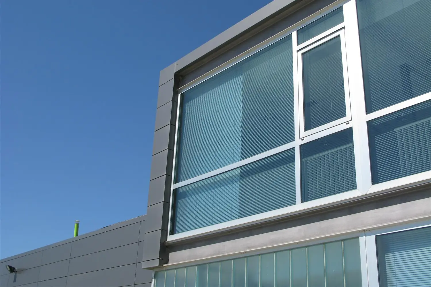 Se conserva la zona administrativa preexistente, mientras que se ajusta la altura del peto de la fachada de las oficinas para armonizar el conjunto.