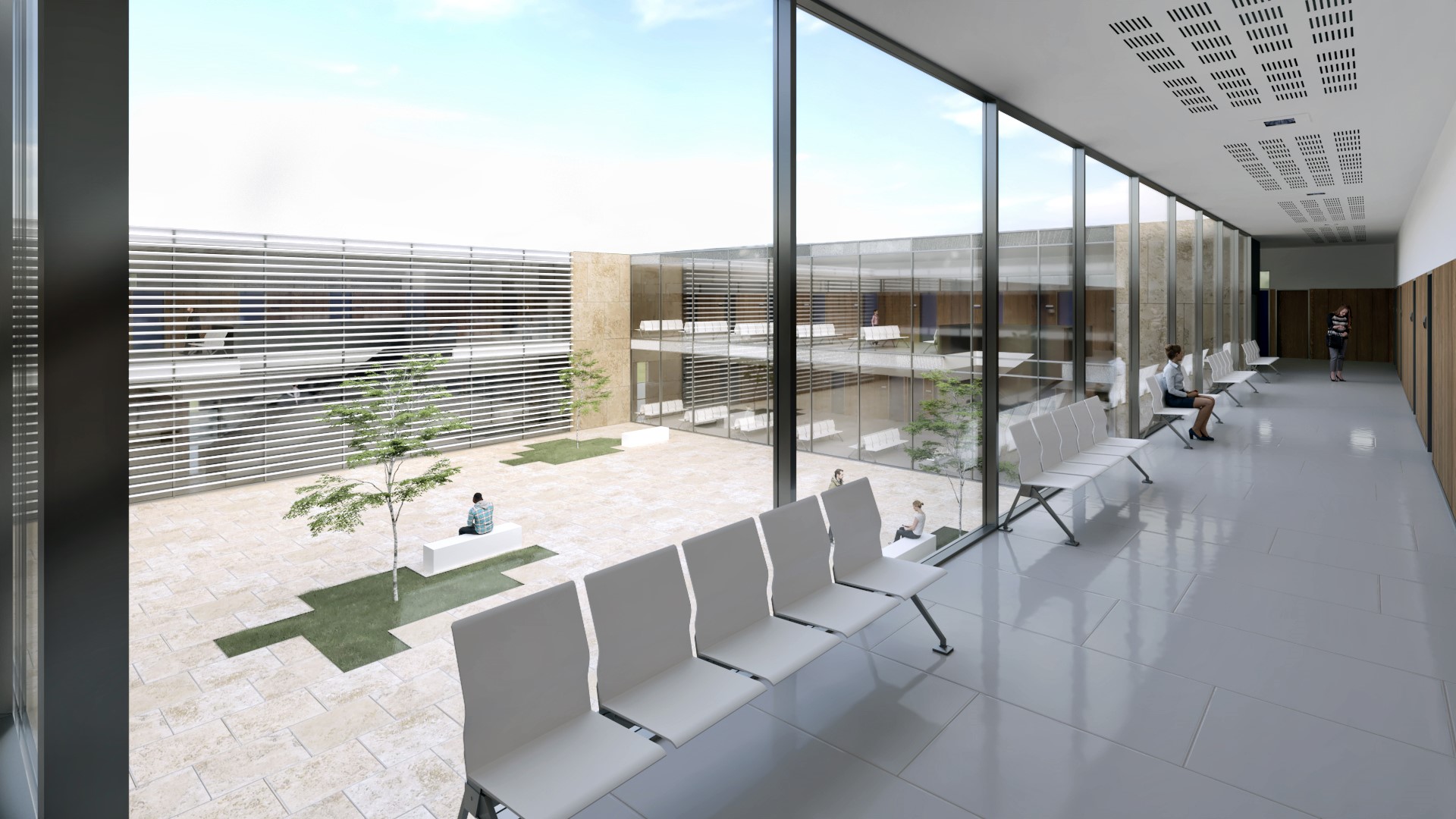 Uno de los elementos clave del proyecto es la creación de un entorno más amable y acogedor para los usuarios. Para ello, se han ampliado los corredores y diseñado zonas de espera más luminosas, que se integran con el patio central, mejorando la calidad ambiental del interior y la experiencia del paciente. Esta estrategia rompe con la rigidez de los modelos convencionales, promoviendo una mayor sensación de confort y bienestar.