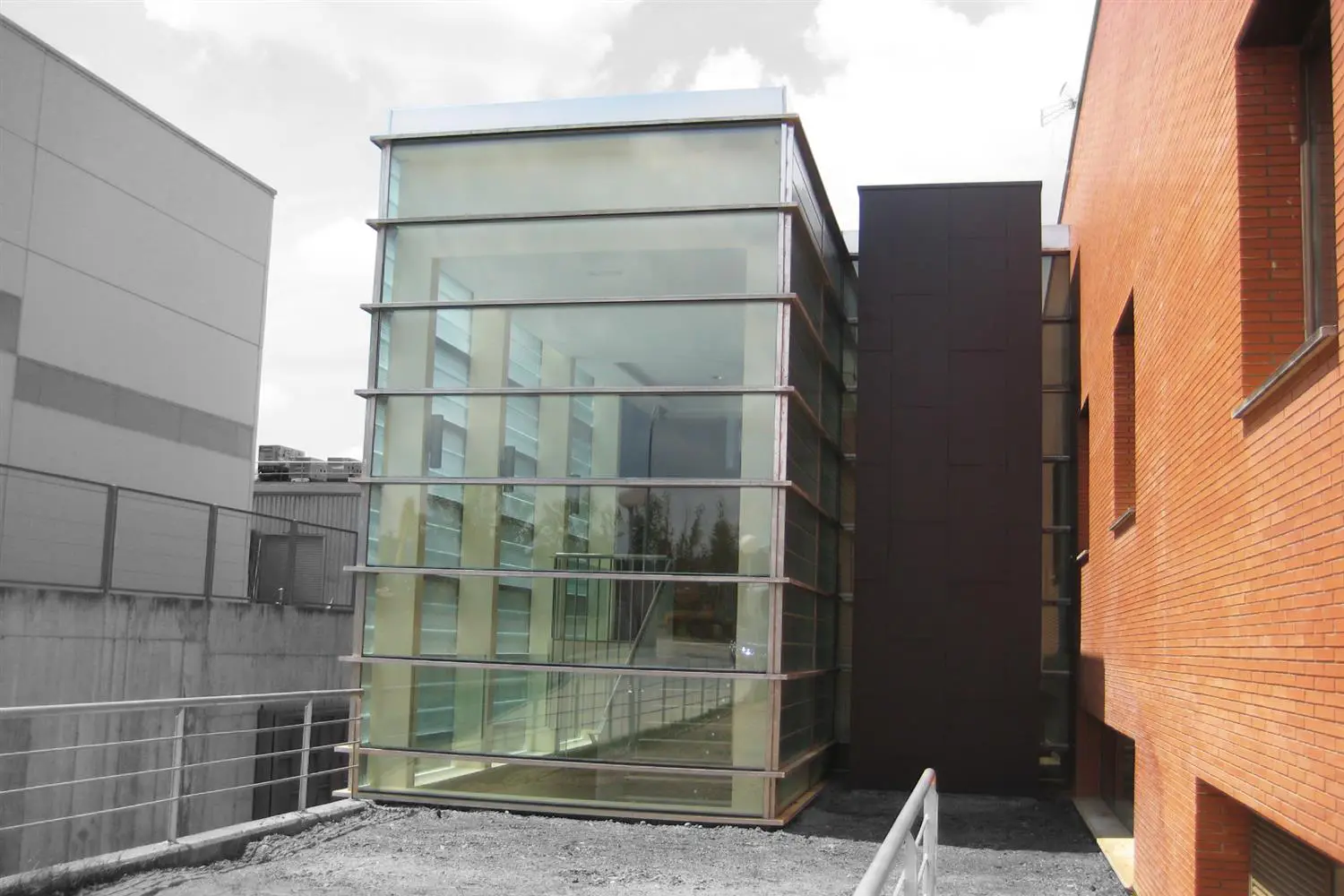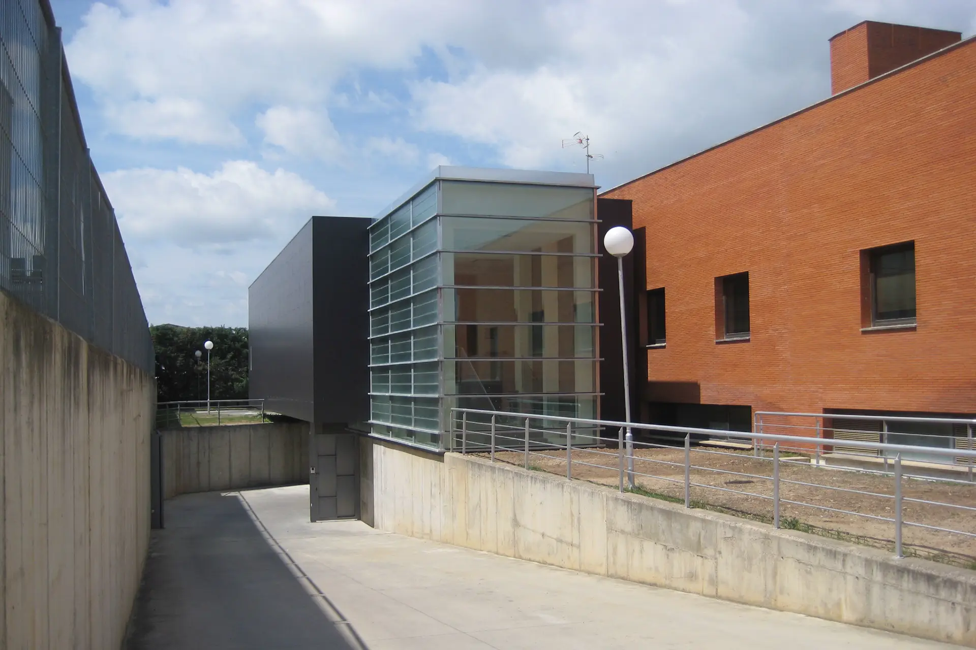 La intervención se resuelve a través del diálogo entre dos volúmenes contrapuestos. Por un lado, una caja cerrada en negro que alberga las salas y velatorios; por otro, un prisma de vidrio que, ligero y transparente, se eleva sobre el jardín e integra el núcleo de comunicación vertical.